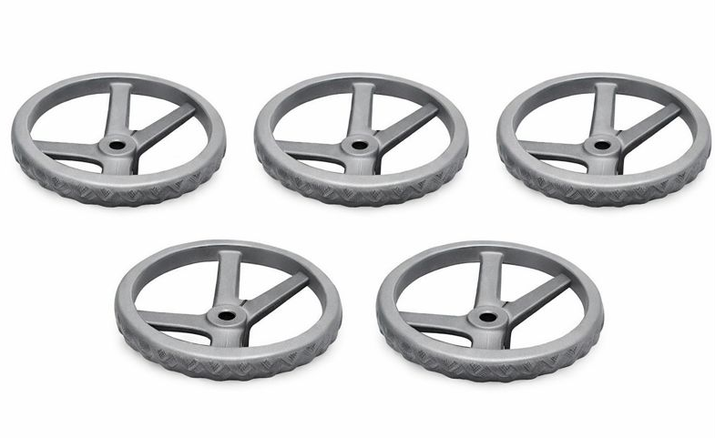 הגלגל עשוי מתכת חזקה ועמידה, עם גימור אפור איכותי המבטיח עמידות לאורך זמן גם בתנאי חוץ קשים.