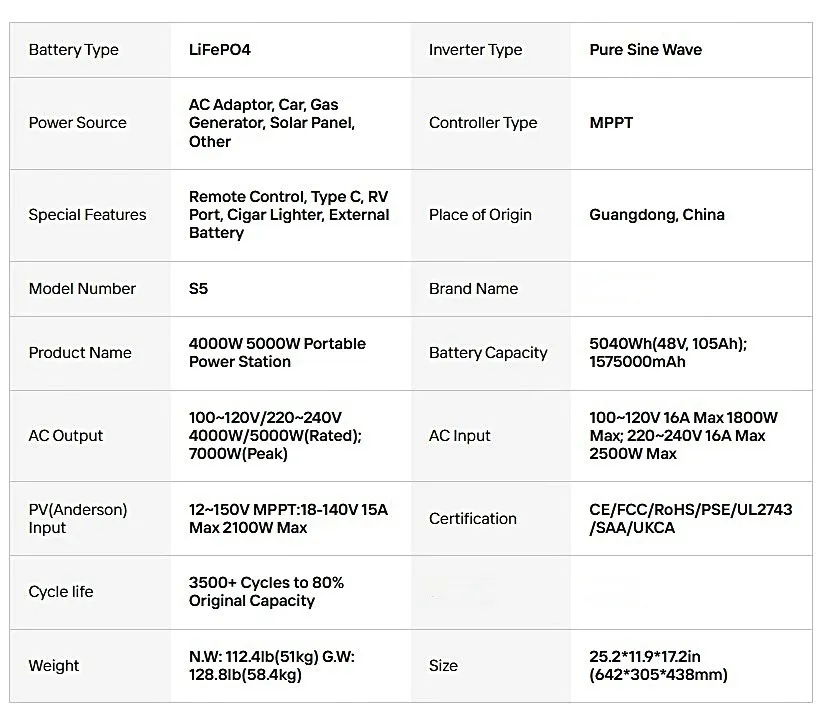 תחנת כוח ניידת עוצמתית 5000W 5040 Wh